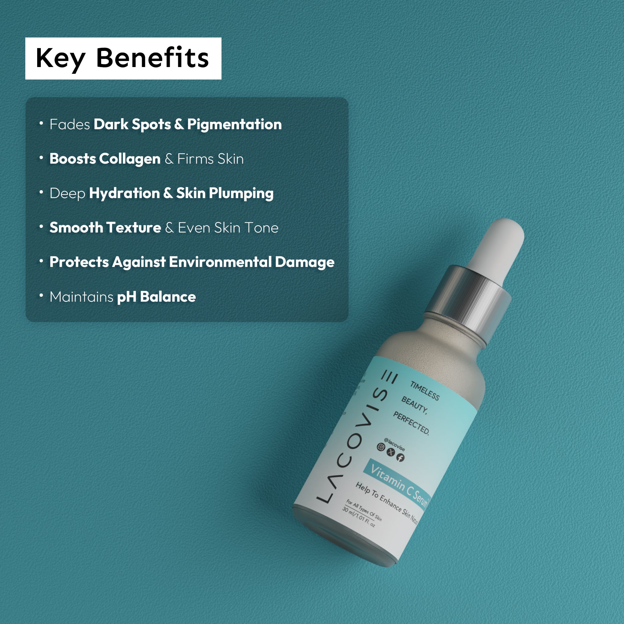 Lacovise Vitamin C Serum is a lightweight, fast-absorbing formula powered by Ethyl Ascorbic Acid — a stable and effective form of Vitamin C. It helps enhance your skin’s natural radiance while reducing dark spots and pigmentation. Enriched with hydrating agents like Sodium Hyaluronate and Glycerin, this serum leaves your skin looking healthy, smooth, and visibly brighter.